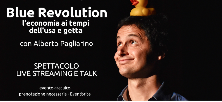Nell’ambito di #SOStenibilmente di CIFA onlus, SCT Centre | Corep insieme ad Associazione Pop Economix e a Il Mutamento, in collaborazione con il Polo del ‘900 per il progetto “Mondi (in)sostenibili”, presentano un evento in streaming dedicato all'economia sostenibile e green. Lo spettacolo gratuito in live streaming il 24 novembre alle ore 18 Blue Revolution. L’economia ai tempi dell’usa e getta con Alberto Pagliarino sarà seguito da un talk con esperti di teatro, economia circolare, graphic novel e cittadinanza attiva, un appuntamento di eccezione inserito nel ciclo di talk online “Blue Revolution Talk Show”, su ambiente e circolarità, promossi da Mercato Circolare, Pop Economix e BeccoGiallo Editore in partnership con il progetto Ecco di Legambiente. Infatti da marzo 2020 Blue Revolutio